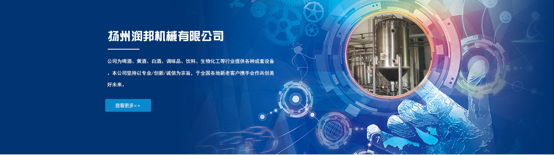 揚(yáng)州潤(rùn)邦機(jī)械有限公司是中國(guó)飲料工業(yè)協(xié)會(huì),中國(guó)酒業(yè)協(xié)會(huì),中國(guó)食品工業(yè)協(xié)會(huì)啤酒專(zhuān)業(yè)委員會(huì)會(huì)員單位。公司座落于風(fēng)景秀麗的揚(yáng)州北山工業(yè)園,距揚(yáng)溧高速瘦西湖出口100米處。